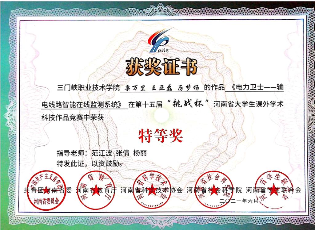 2021年河南省“挑战杯”大学生课外学术科技作品竞赛特等奖《电力卫士》