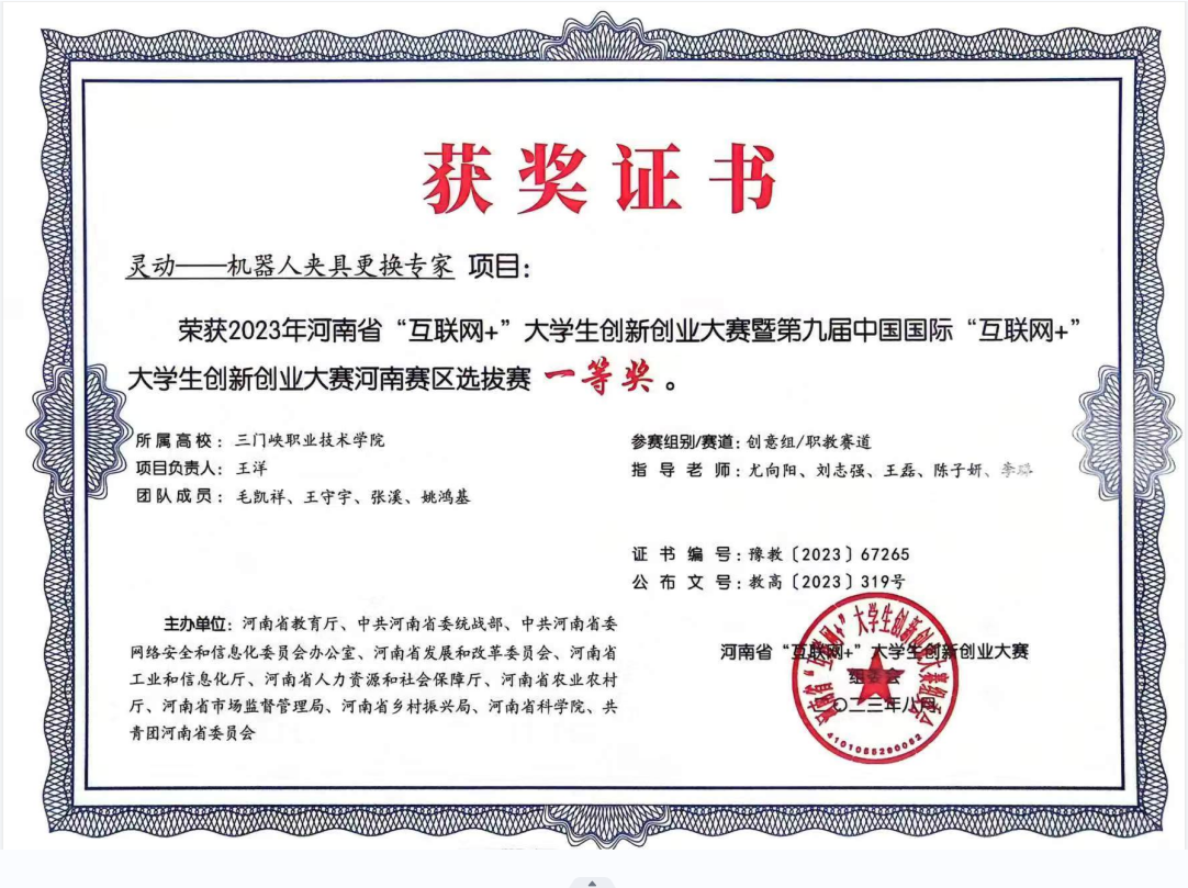 2022年河南省“互联网+”大学生创新创业竞赛一等奖获得者