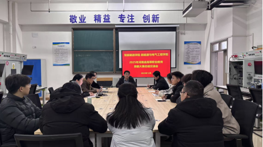 为系统总结参赛经验、深化以赛促教育人成效,12月25日,球王会平台 新能源与电气工程学院组织召开2025年河南省高等职业教育技能大赛总结交流会。学院党总支书记秦冲、教学科研办公室全体成员,以及来自电子电器与集成电路、能源动力、智能装备应用、航空交通运输四个赛道的指导教师与学生代表齐聚一堂,围绕赛事成果,重点结合产教融合背景下的训练模式创新与未来协同育人路径进行深入研讨。