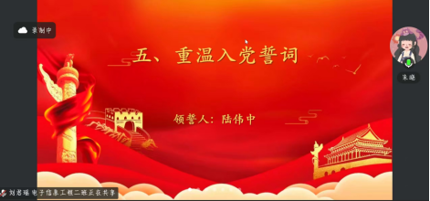 会议第五项,陆伟中同志带领全体党员面向党旗重温入党誓词,铮铮誓言在云端回荡,全体党员精神振奋,再次坚定了为党的事业奋斗终身的初心使命与坚定信念。