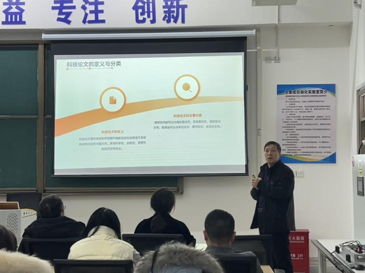 讲座中,辛百灵工程师结合自身写作和投稿的丰富经验,系统阐述了科技论文从撰写到发表的完整流程。他重点围绕文献调研与选题设计、论文结构与写作规范、图表设计与优化、投稿策略与修改回复等关键环节,进行了条理清晰、内容详实的讲解,并结合典型论文案例展开具体分析。他鼓励在场教师深入钻研、精益求精,积极将科研项目成果梳理、提炼,转化为具有学术价值的高质量论文,推动科研成果的传播与转化。讲座内容详实、指导性强,在座教师纷纷表示收获颇丰,对今后开展论文写作与发表具有重要的意义。