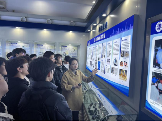 在全国科普教育基地中国轴承陈列馆,师生党员参观了新增的“数智转型成果展区”。数字孪生设计模型、AI质检系统等前沿展品,生动展现了轴承产业的智能化进程。企业专家结合突破国外垄断的技术案例,深入解析数智技术在研发制造中的应用,为师生上了生动的“产业第一课”。