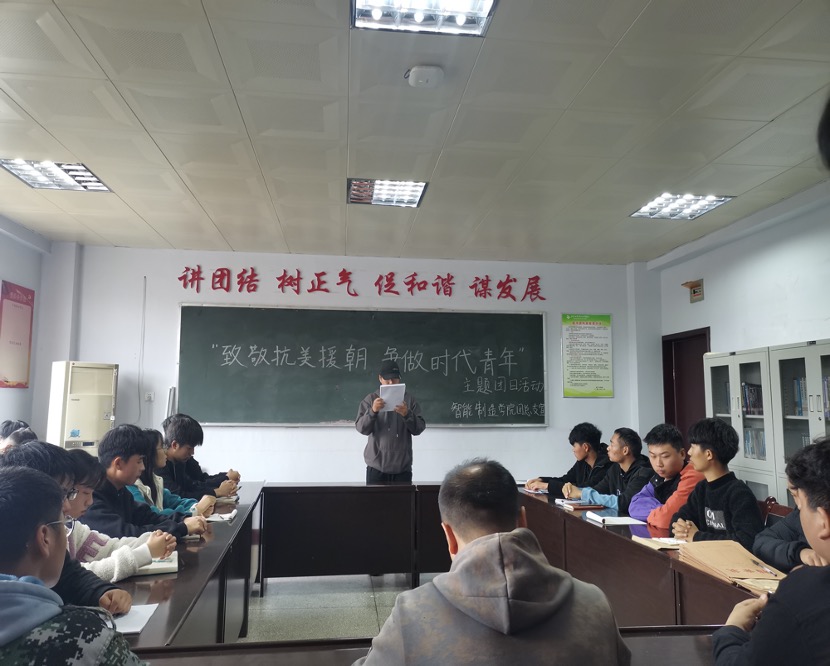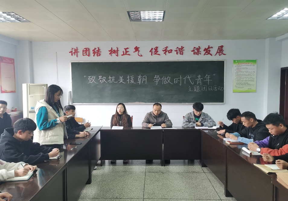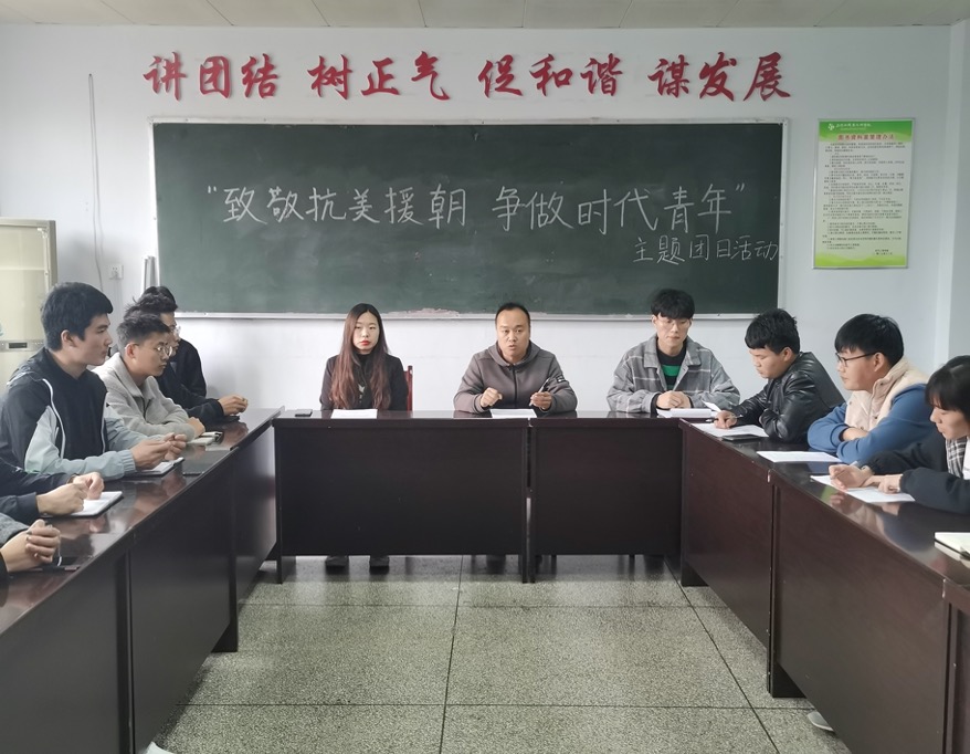 本次团日活动的主题是“致敬抗美援朝 争做时代新人”,包括三个部分。第一部分是召开团员座谈会,学习习近平总书记在纪念中国人民志愿军抗美援朝出国作战70周年大会上的讲话。同学们重温入团誓词,齐声高唱中华人民共和国国歌《义勇军进行曲》和中国共青团团歌《光荣啊,共青团》。座谈会上,同学们表示作为新时代的大学生,要追思过去、铭记历史,从历史和革命先辈的事迹中汲取精神养料,发挥专业优势勇挑信息时代重担。