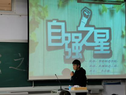 在PPT展示环节中,选手们用精彩的演讲向观众们传达了自己的自强事迹,他们有的从自身成长经历说起,讲述一路走来的拼搏与奋斗;有的热心志愿服务,用社会实践诉说助人与奉献;有的积极投身新冠肺炎疫情防控,用实际行动诠释爱国与担当,展示了球王会平台大学生良好的精神风貌,越挫越勇的态度和自立自强的品质。