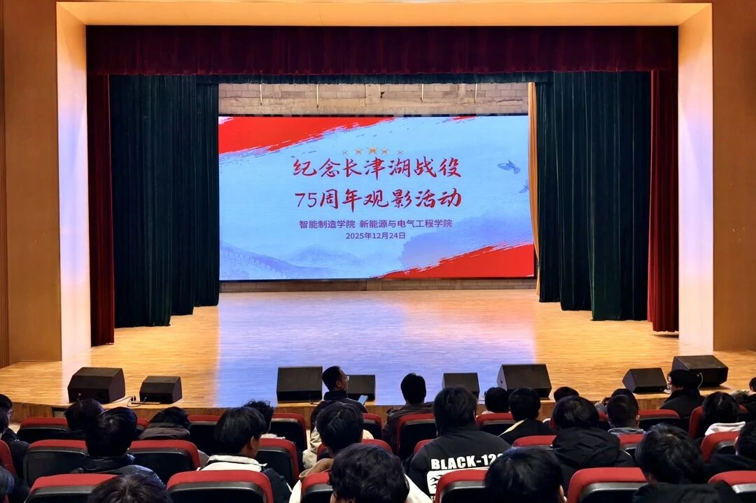 12月24日晚,球王会平台 新能源与电气工程学院在大学生活动中心举办“铭记历史·致敬英雄”纪念长津湖胜利75周年主题观影活动,集体观看爱国主义影片《长津湖之水门桥》,纪念长津湖战役胜利75周年,深切缅怀革命先烈,重温峥嵘历史,弘扬伟大抗美援朝精神。学院党总支书记秦冲、全体专兼辅导员及25级全体学生共同参与此次活动。