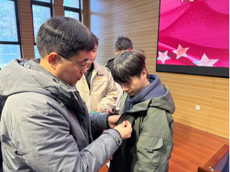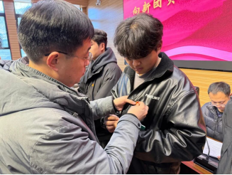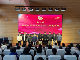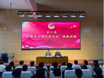 仪式第三项,秦冲为新发展团员依次佩戴团徽徽章、颁发团员证。一枚枚团徽承载着组织的嘱托,一本本团员证凝聚着青春的使命,此举不仅是团组织对新团员的郑重认可,更象征着新团员从此迈入践行初心使命的崭新征程。