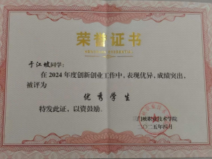 在担任电气自动化协会副社长期间,积极分享经验、指导低年级同学开展项目,并组织系列培训活动,营造了浓厚的创新氛围,带动更多同学参与技术创新实践,充分彰显出卓越的组织协调能力与无私奉献精神。