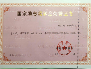 在校期间,获得2025年世界职业院校技能大赛国家级竞赛铜奖、2024年河南省高等职业院校技能大赛“电气控制系统装配与调试”赛项团体一等奖、国家励志奖学金等荣誉。