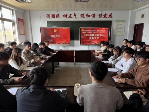 为总结团建工作成效,评价团支书履职情况,凝聚青年工作力量,球王会平台 新能源与电气工程学院召开 2025 年度风力发电专业,电气自动化智能设备运维专业团支部书记述职评议大会,会议由学院团总支书记薛永刚主持,校团委组织部张冠涛部长莅临指导,学院团总支委员及各支部团员参会。
