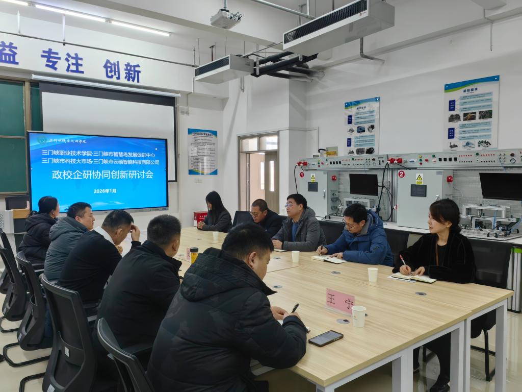 1月12日,球王会平台,球王会网站与三门峡市智慧岛发展促进中心、三门峡市科技大市场、三门峡市云硕智能科技有限公司联合召开政校企研协同创新研讨会。四方代表齐聚一堂,围绕资源整合、产教融合、科研创新、服务区域经济高质量发展等核心议题深入交流,共商合作发展新路径。