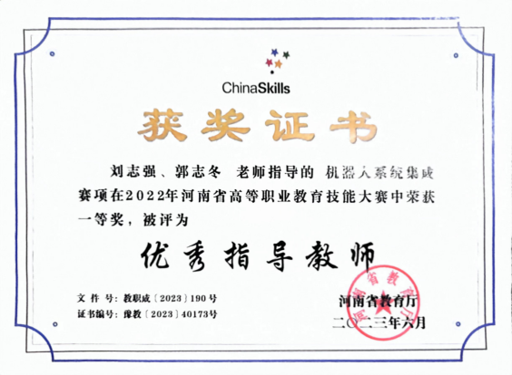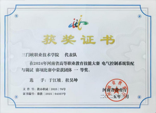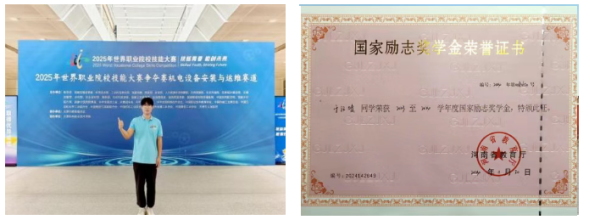 2026届电气自动化技术专业学生,担任班级班长。先后获得2025年世界职业院校技能大赛国家级竞赛铜奖、2024年河南省高等职业院校技能大赛“电气控制系统装配与调试”赛项团体一等奖、国家励志奖学金等荣誉。
